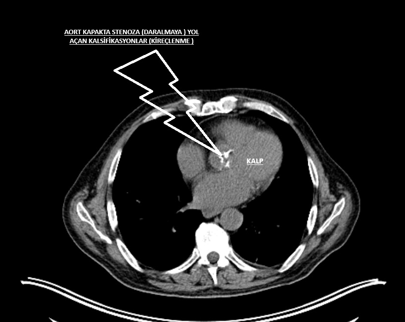 Resim 1: Göğüs Tomografisinde görülen aort kapaktaki kireçlenme (kalsifikasyon)