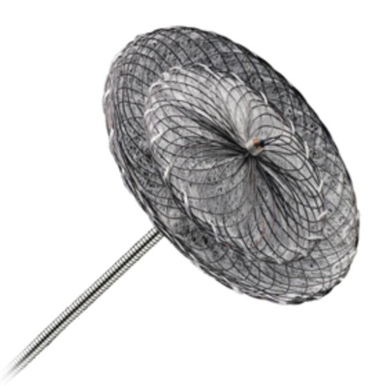 Çift katmanlı şemsiyeye benzeyen özel bir kapatma cihazı (nikel-titanyum alaşımlı, iki diskli) açıklığın her iki tarafına yerleştirilir.