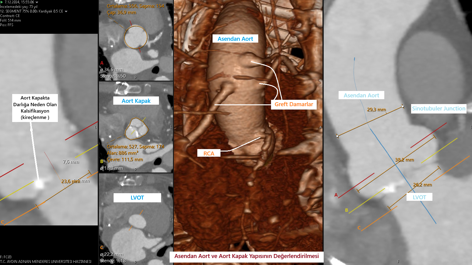 Resim 1: Göğüs Tomografisinde görülen aort kapaktaki kireçlenme (kalsifikasyon)